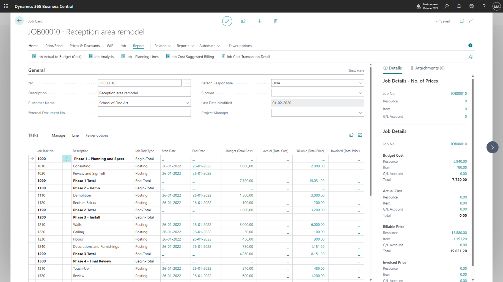 - Oferă estimări precise asupra implicărilor financiare ale joburilor în progres.